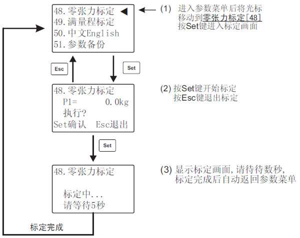 [4]對張力信號的零點及滿量程進行標定,并確認張力顯示正常,如張力顯示不正常回到步驟[2]。