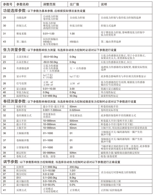 為了使控制器能正確測量卷料張力,必須對與張力測量相關的參數進行正確的設置:
