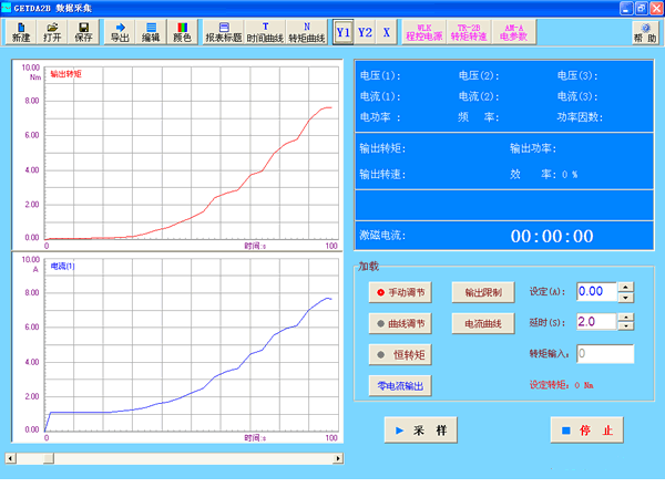 - 所有儀器通過RS485總線與電腦連接,實現對電機的自動加載以及對數據的集中采集。實時顯示各參數與時間之間的關系曲線,以記錄整過測試過程。